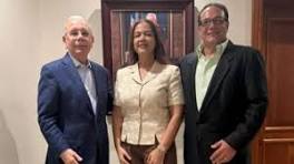 El aspirante presidencial Manfred A. Mata, junto a su esposa, lAna de los Santos, en una visita al expresidente Danilo Medina.